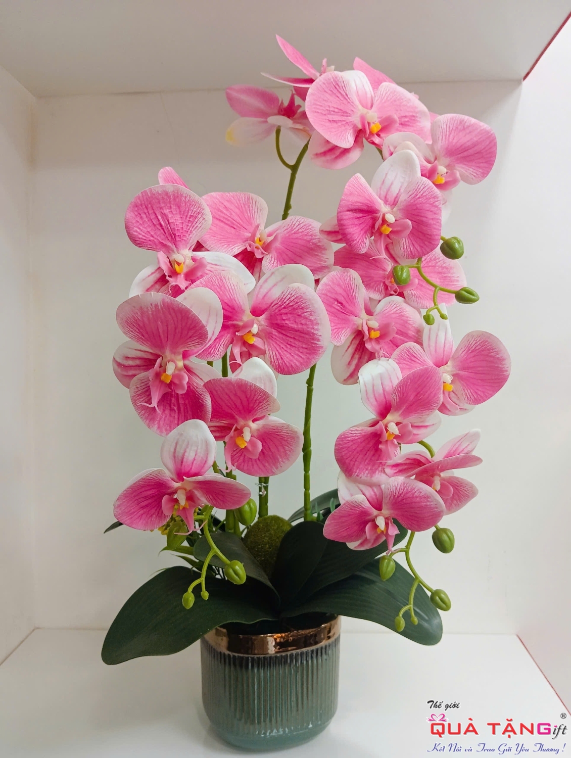 Bình hoa hồ điệp 3 nhánh, chất liệu lụa vô cùng đẹp.